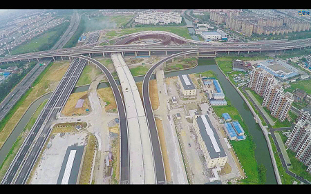 杭甬高速寧波出口互通立交工程鳥瞰圖。