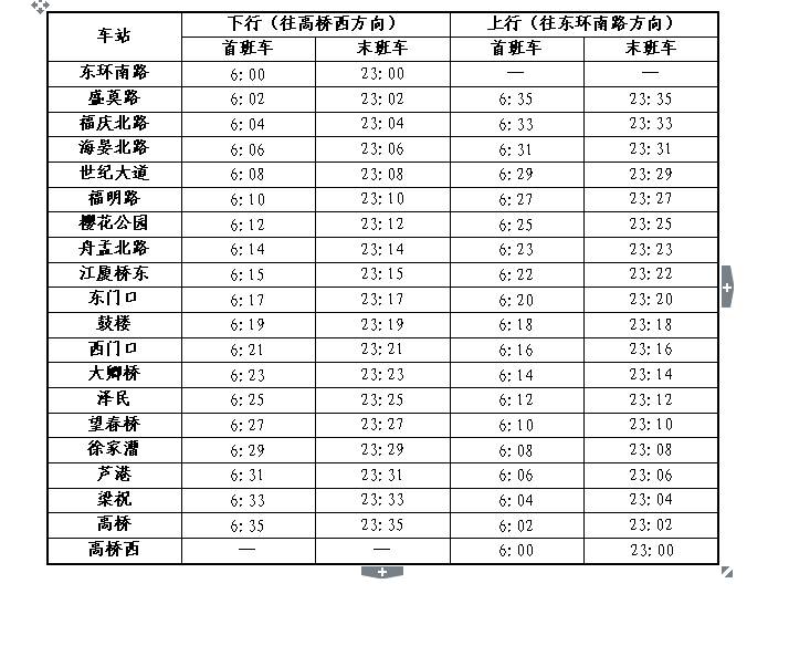 車站工作人員溫馨提醒:跨年夜當(dāng)晚,東門口站往高橋西方向末班車時(shí)間23:17,往東環(huán)南路方向末班車時(shí)間為23:20;鼓樓站往高橋西方向末班車時(shí)間為23:19,往東環(huán)南路方向末班車時(shí)間為23:18。請(qǐng)趕末班車的乘客預(yù)留好進(jìn)站、購(gòu)票的時(shí)間,以免錯(cuò)過列車。