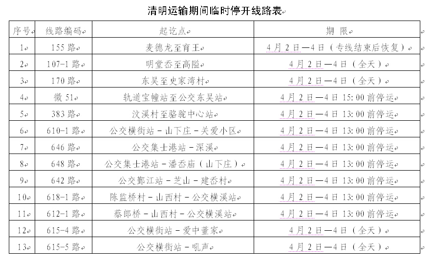 4月2日至4日,客管部門將設(shè)置14個(gè)清明公交專線的上客點(diǎn)