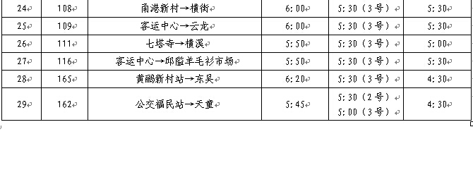 為了保障公交專線的運(yùn)營(yíng),155路等13條公交線路將停運(yùn),停運(yùn)信息看這里(見(jiàn)圖1),而包括7路、518等在內(nèi)的29輛常規(guī)公交車,它們的早班車時(shí)間也會(huì)提前,最早的會(huì)在3:50分。(見(jiàn)圖2)