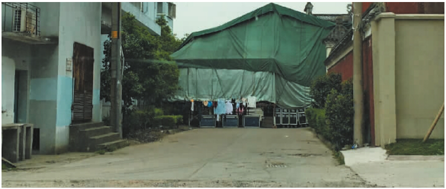開車進(jìn)出的道路被戲臺(tái)堵上了