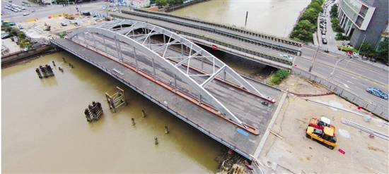 漸漸的,這座阿拉寧波人惦記了近三年的“老江橋”揭開了神秘面紗,已經(jīng)能看到橋梁全貌。