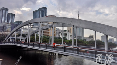 目前,靈橋大修工程的欄桿安裝、管線回遷、表面涂裝等工作已基本完成,功能性照明、景觀燈等相關附屬設施也正在抓緊安裝當中。