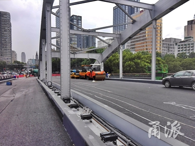 同時,還進行了12根橫梁和吊桿的對接鉚接,110余根縱梁的鉚接,上萬套高強螺栓的栓接,以及橋面板約300多米焊接等安裝工作,并于6月下旬進入橋面瀝青的鋪設階段。