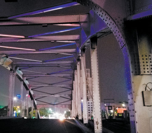 橋身上數(shù)不清的顆顆鉚釘猶如點點繁星,保留了“老江橋”最古樸厚重的氣質(zhì)。