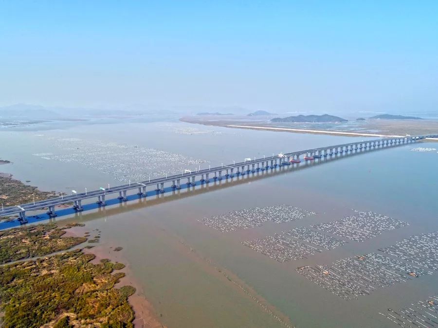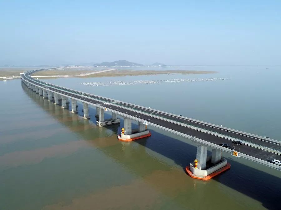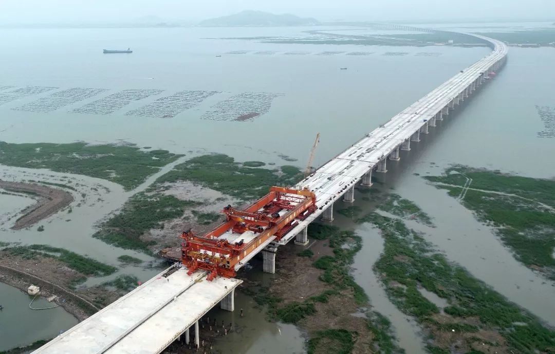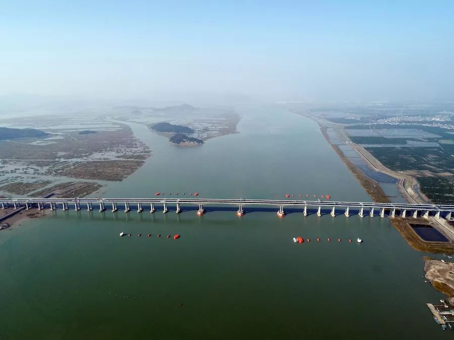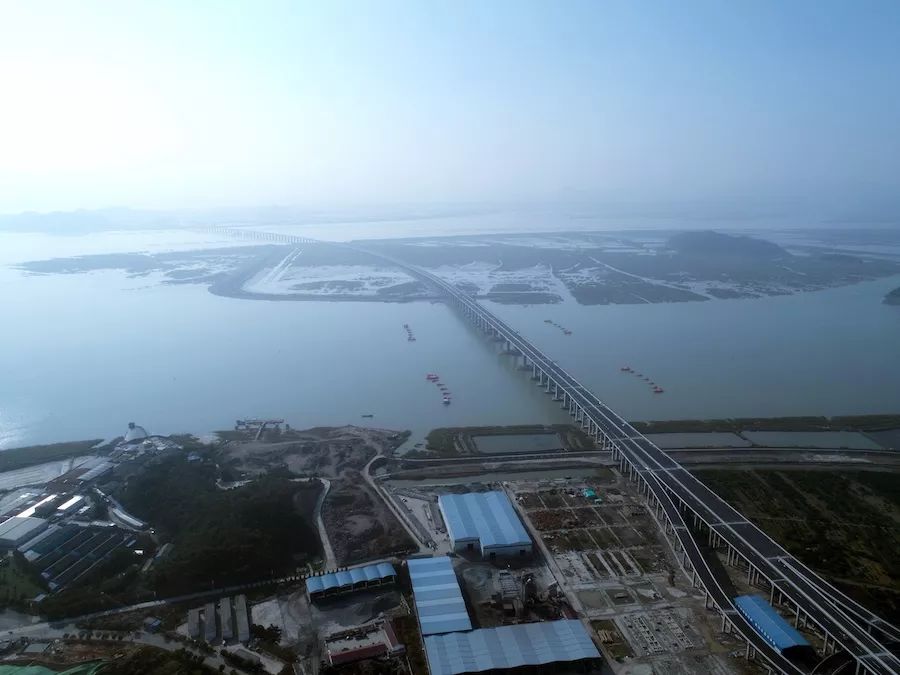 三門灣大橋今年6月24日傍晚順利實現(xiàn)海上全線貫通