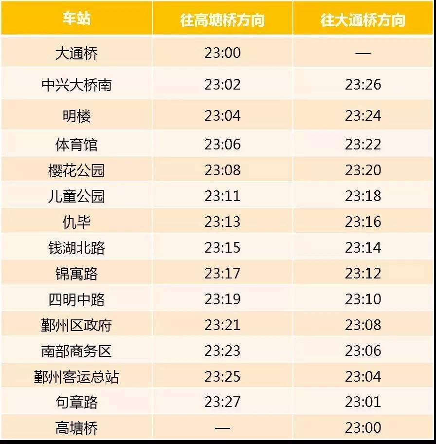 31日1號(hào)線首末班車時(shí)刻表