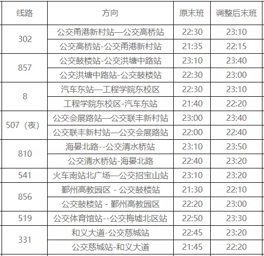 其中,302路、8路、507(夜)路、810路、856路雙向延遲40分鐘,857路雙向延遲半小時(shí),331路雙向延遲35分鐘,519路體育館站往梅墟北區(qū)站方向單向延時(shí)40分鐘,541路火車南站北廣場(chǎng)往公交招寶山站方向單向延遲10分鐘發(fā)車。