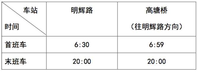 ●早高峰(7:00—8:30)及晚高峰(16:30—18:00)期間,行車間隔7—8分鐘。其他運營時段,行車間隔約15分鐘。