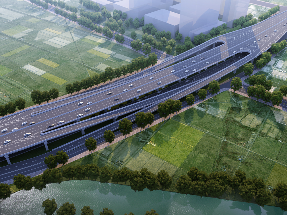 鄞州大道—福慶路(東錢湖段)快速路工程(原名為東錢湖快速路工程)位于鄞州區(qū),起自寒松路,沿鄞州大道、福慶路至誠信路,然后沿誠信路至東環(huán)南路,再往北接至現(xiàn)狀邱隘立交,全長約10.5公里,工程采取城市快速路建設標準,設計車速80公里/小時,地面輔道采用城市主干道標準,設計車速50公里/小時。
