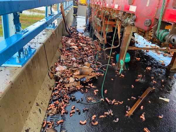“我們接到報(bào)警后,立即通知就近警力、聯(lián)勤力量趕赴現(xiàn)場(chǎng)。但到那邊時(shí),發(fā)現(xiàn)火情已不受控制了。”高速交警告訴記者,起火貨車的駕駛員是丁師傅,他載著一車的金屬制品是從臺(tái)州過(guò)來(lái),準(zhǔn)備運(yùn)往北侖。