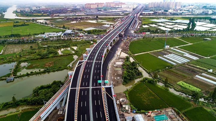 其中,機(jī)場(chǎng)快速路南延南段工程橫跨鄞州、奉化,北起繞城高速,南至奉化區(qū)岳林東路,全長(zhǎng)14.4公里,采用“主線高架+地面輔道”的建設(shè)形式,標(biāo)準(zhǔn)段設(shè)置雙向6車(chē)道,高架主線設(shè)計(jì)時(shí)速80公里每小時(shí),地面輔道設(shè)計(jì)時(shí)速50公里每小時(shí)。