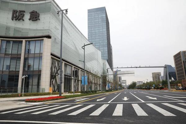 5號(hào)線一期海晏北路站位于寧穿路與海晏北路交叉口,與1號(hào)線車站呈“十”字換乘,為地下三層島式車站。現(xiàn)海晏北路封閉的約300米路段已恢復(fù)為雙向八車道。路面上交通標(biāo)線、信號(hào)燈及路燈已施劃和安裝完成,非機(jī)動(dòng)車道施工也全部結(jié)束,道路新容亮相。