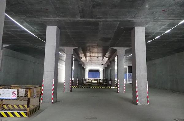 在海晏北路站地下空間,這里原本的基坑已經(jīng)變成車站的“白坯房”,車站結(jié)構(gòu)框架已成型。