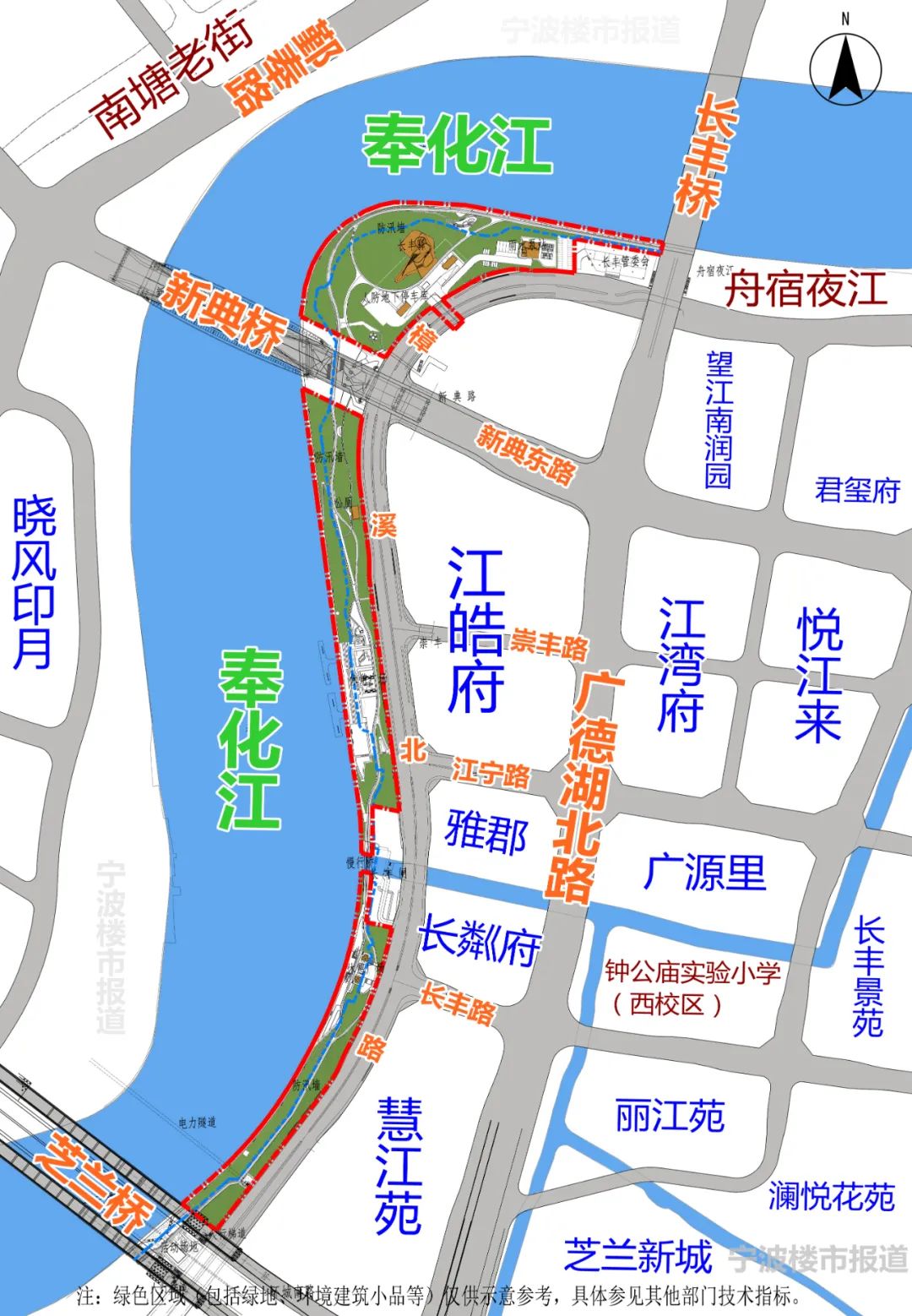 按照此前鄞州資規(guī)部門批前公示方案,這一段濱江休閑帶過長豐橋后可接舟宿夜江,過在建的新典橋后,一直往南延伸到芝蘭橋。對于長豐區(qū)域眾多已建、在建的小區(qū)居民,以后將可以多一個(gè)江邊漫步的好去處了!