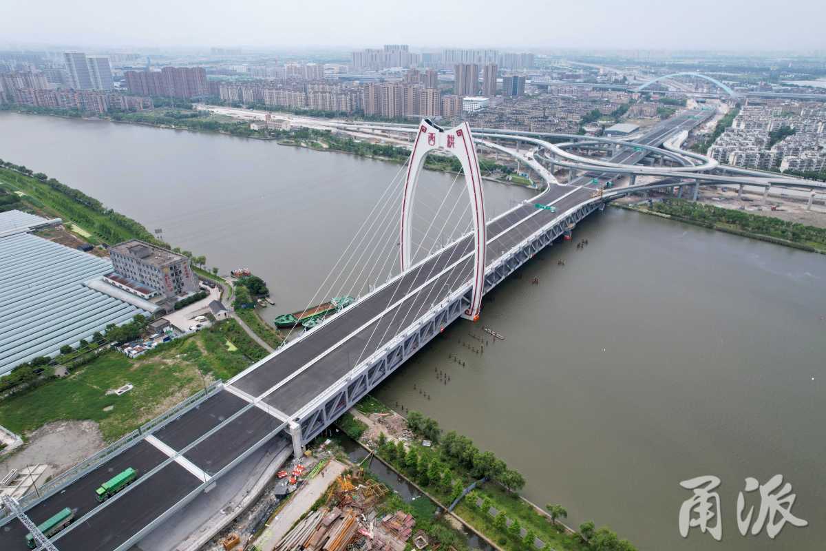 2022年6月9日上午,無人機(jī)鳥瞰寧波西洪大橋主體建筑基本完工,99米的高主塔屹立于姚江之上,為海曙區(qū)連接姚江新城的發(fā)展建設(shè)增添了新地標(biāo)、新景觀。這是寧波第一座雙層通行的跨江大橋!