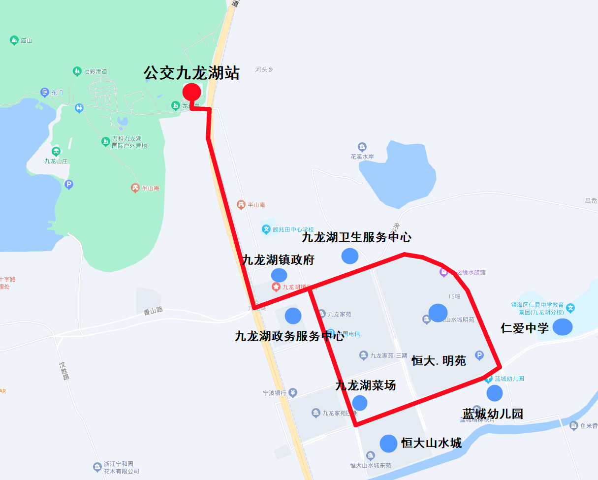 其中外環(huán)線路走向?yàn)辇埗急甭、九龍大道、龍(jiān)绰、御水路、滕山路、龍(jiān)绰、九龍大道、龍都北路。站點(diǎn)設(shè)置:公交九龍湖站、九龍湖鎮(zhèn)政府、龍?jiān)绰酚房凇⒄泻粽荆ň琵埣以芬黄冢、招呼站(御水路下徐路口)、九龍家苑南、滕山路龍(jiān)绰房、招呼站(明苑東)、招呼站(龍?jiān)绰俘埗悸房冢、龍(jiān)绰酚房、九龍湖?zhèn)政府、公交九龍湖站。