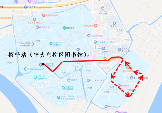 寧波大學(xué)校園線采取環(huán)線運(yùn)行,連接寧大生活區(qū)和教學(xué)區(qū),校園巴士沿途設(shè)置公交招呼站,師生只要在招呼站牌下候車即可,實(shí)現(xiàn)“招手即停”。每天7:00-18:00期間運(yùn)營(yíng),高峰時(shí)間段10分鐘一班。