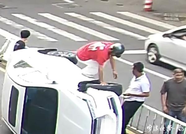 “當(dāng)時(shí)車上有兩名乘客,車門無法打開,所有人都逃不出來,情況非常危險(xiǎn)。”古塘派出所民警黃震瑜告訴記者,幸好有一位姓王的大哥、一位快遞小哥和兩位熱心群眾挺身而出,救出了被困的司機(jī)和乘客。