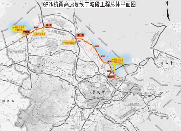 據(jù)介紹,杭甬高速復(fù)線寧波段一期分為東西兩段:
