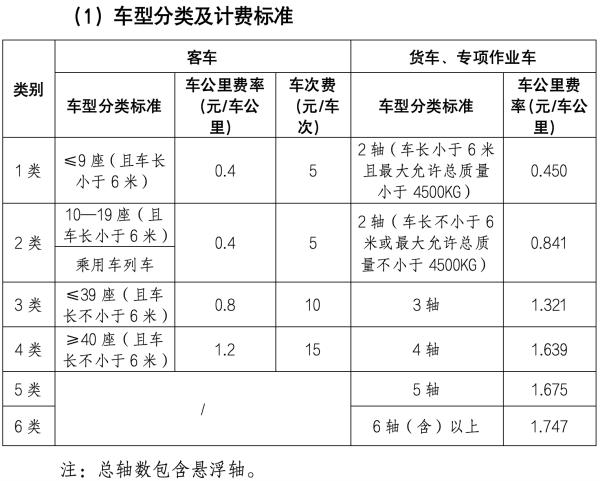 相關(guān)車型的收費里程,詳見下表(最終收費標(biāo)準以省政府批復(fù)為準):