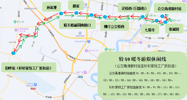 特59路(公交甬港新村站——杉杉家紡工廠折扣店)