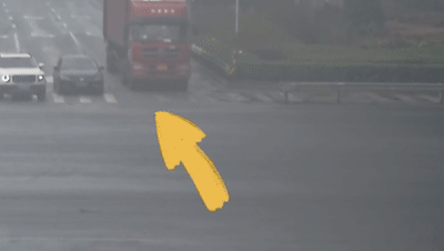 公共視頻顯示,事發(fā)前,兩車同時(shí)在各自的左轉(zhuǎn)彎車道等候信號(hào)燈。在信號(hào)燈轉(zhuǎn)為綠燈后,黑色轎車先行一步,但由于轉(zhuǎn)彎半徑過(guò)小,“堵”住了半掛車的去路,導(dǎo)致黑色轎車直接進(jìn)入紅色半掛車車頭盲區(qū)范圍,于是發(fā)生了碰撞。