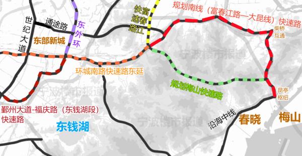 如果其建成,往西接通環(huán)城南路高架,可讓梅山、春曉、柴橋以及北侖城區(qū)居民便捷去往寧波主城區(qū)各地。