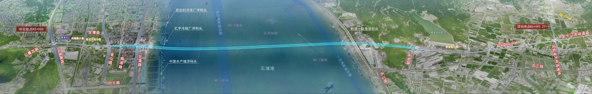 象山石浦港海底隧道及接線是S202省道嘉象線的重要組成部分,隧道及接線全長約6.7公里,隧道部分長約4.2公里,采用一級公路標準建設,其中跨海隧道部分采用盾構方案,隧道部分滿足高速公路標準,盾構外徑13.3米,設置雙向四車道,是寧波市首條海底盾構公路隧道,也是國內最長的穿越全淤泥質軟土地層的海底盾構公路隧道。