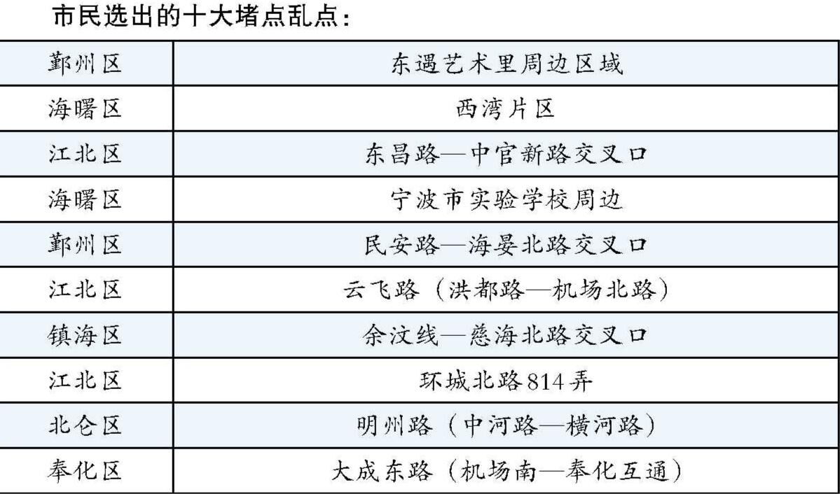 通過強(qiáng)化對“民選民評”堵點(diǎn)亂點(diǎn)的治理,寧波將進(jìn)一步改善城市交通擁堵狀況,持續(xù)提升人民群眾滿意度,推動(dòng)全市交通擁堵治理成效再上新臺(tái)階。