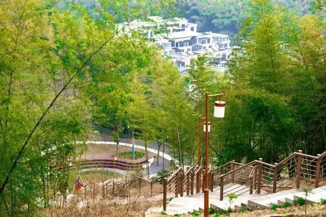 站在步道起點(diǎn)向上望去,石階步道沿著山體綿延而上,兩旁的竹林郁郁蔥蔥,穿行其中野趣十足。