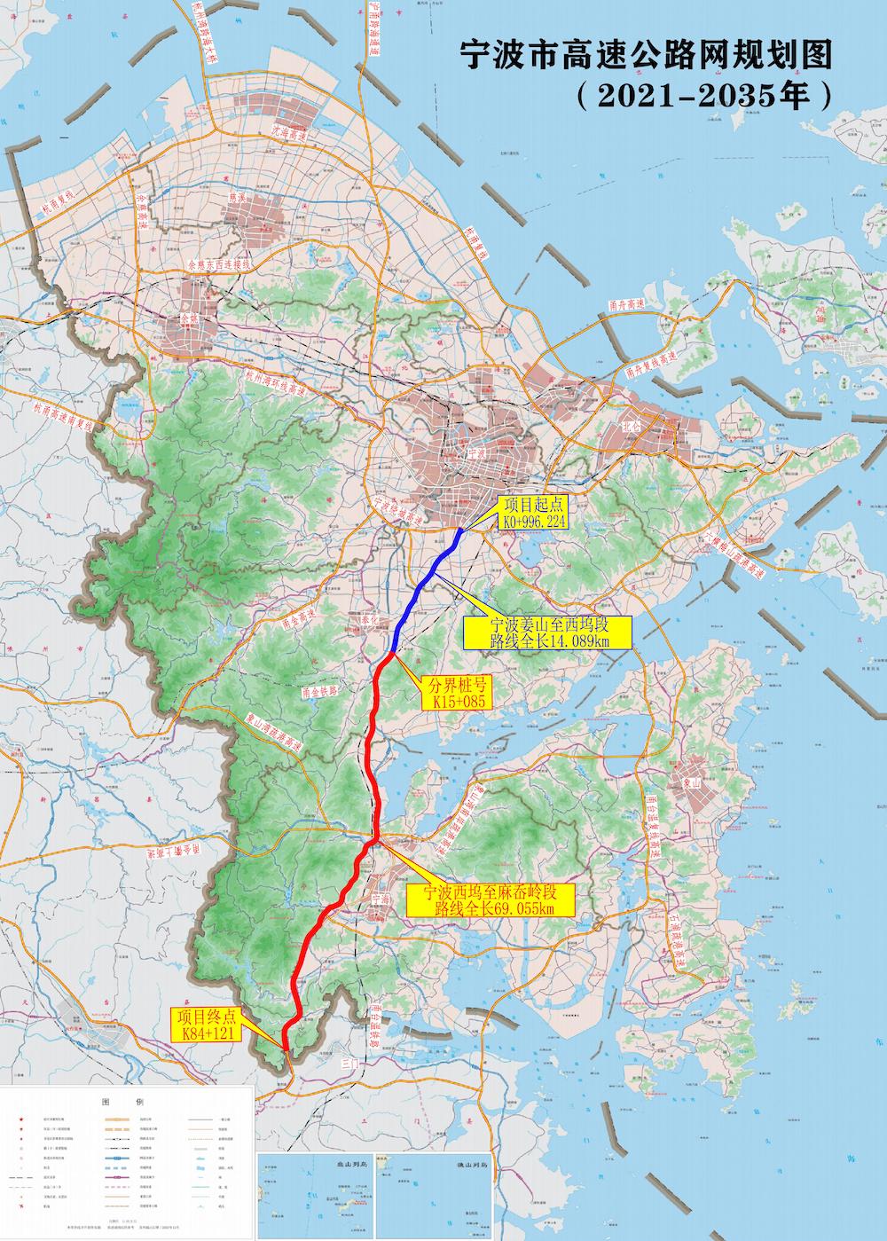 改擴(kuò)建的路段起自奉化西塢,接同步改擴(kuò)建的G15沈海高速寧波姜山至西塢段,止于寧海麻岙嶺隧道甬臺(tái)界,接改擴(kuò)建的G15沈海高速麻岙嶺至臨海青嶺段。