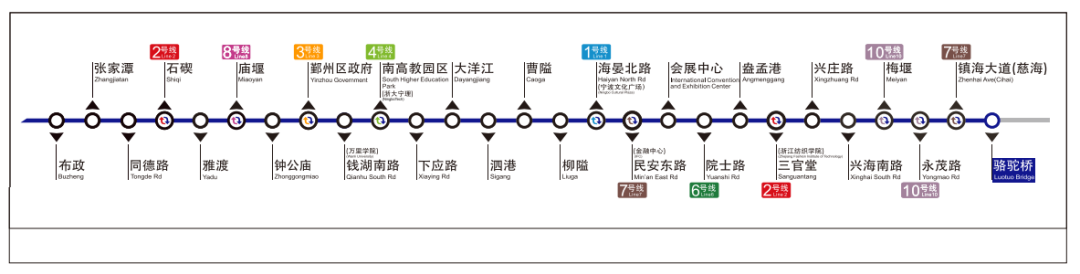 梅堰站、永茂路站與未來建成的市域鐵路慈溪線(10號(hào)線)換乘,鎮(zhèn)海大道(慈海)站與未來建成的7號(hào)線換乘。