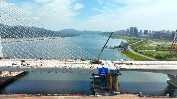 梅山側邊跨順利實現(xiàn)合龍。