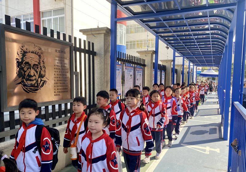每天放學(xué),浙江省寧波市李惠利小學(xué)學(xué)生在“最美上學(xué)路”排隊有序回家。(寧波市文明辦供圖)
