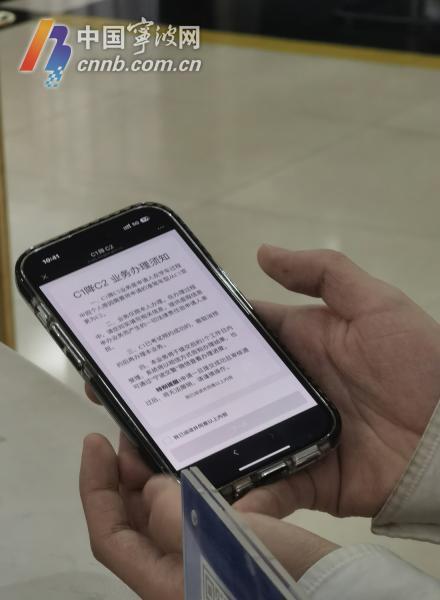 正當小曹準備取號排隊時,導辦員攔住他,告訴他一個好消息——今天起5條便民新舉措實施,其中“C1降C2”業(yè)務可以“網(wǎng)辦”了。隨后,導辦員指導小曹登錄寧波交警官方微信并辦理相關申請,前后不超過5分鐘。