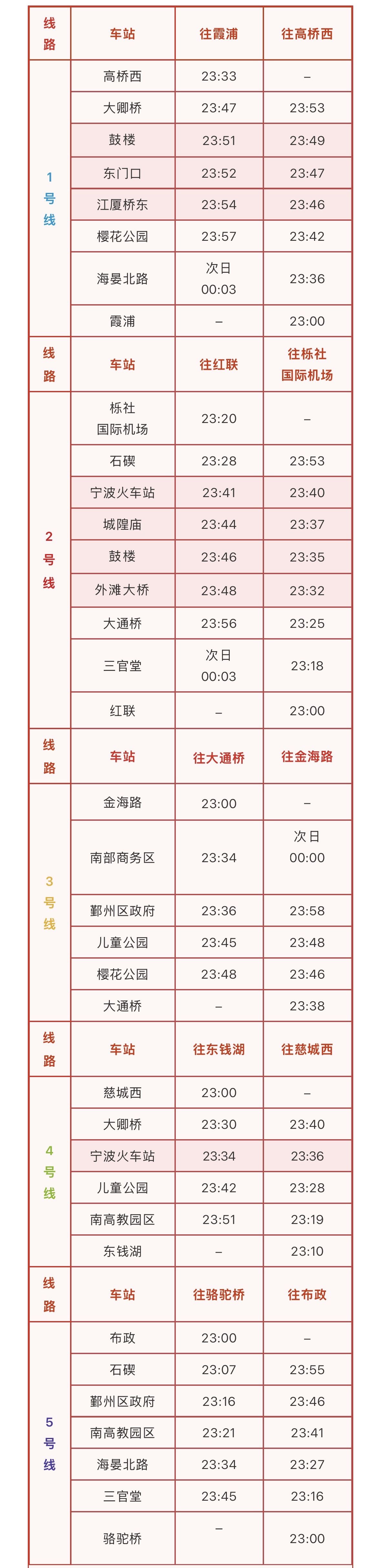 “五一”假期即將來臨,從4月30日起至5月5日,寧波地鐵全線網(wǎng)延長運(yùn)營1小時(shí)。