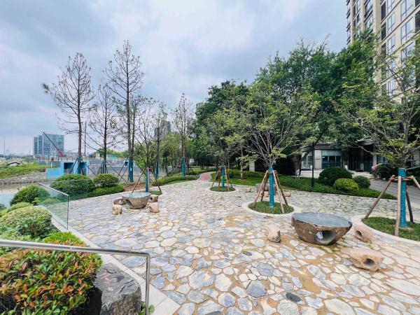 在下穿通道的江灣花苑側(cè)入口處,“甬小園”成為亮點(diǎn)。石桌石椅錯(cuò)落有致,與附近公園相連,為居民提供休閑空間。