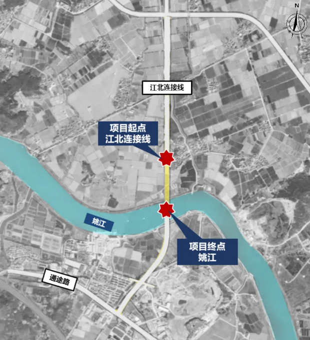 228國道海曙段工程(姚江-通途路)(江北)項(xiàng)目,北起江北連接線,南至姚江,道路長約0.58公里,過江橋梁處寬度38米,過江后與現(xiàn)狀道路接順,道路等級為一級公路,設(shè)計(jì)速度80km/h。