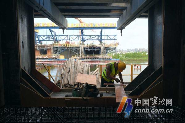 “現(xiàn)在,我們80%以上的建設者都集中在主橋上,正全力以赴推進主橋合龍前剩余40米的懸臂澆筑施工!”邵家渡大橋項目建設單位負責人、寧波城投公建事業(yè)部葉嘉庭表示。