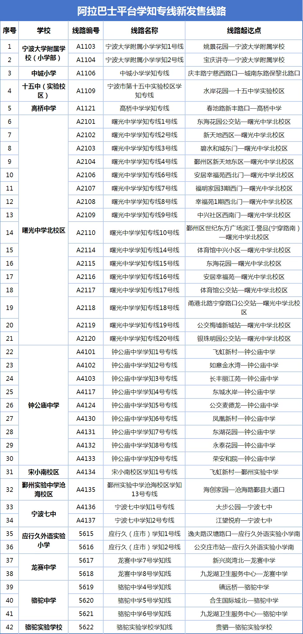 第二波新開(kāi)售“學(xué)知專線”42條線路如下: