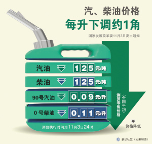 國(guó)家發(fā)改委網(wǎng)站昨日下午發(fā)布消息稱(chēng),自11月3日24時(shí)起,汽、柴油價(jià)格每噸均下調(diào)125元。寧波同步實(shí)行,93號(hào)汽油下調(diào)至5.70元/升。