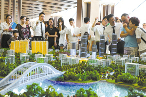 | 在樓盤銷售現(xiàn)場,看房的人多了起來。(王嵐 攝) |