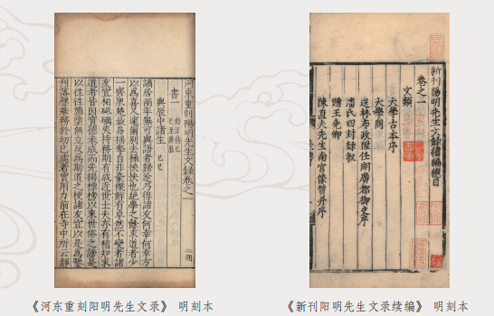 《河東重刻陽明先生文錄》(明嘉靖三十二年刻本)由王陽明弟子黃綰、歐陽德等匯編,書中主要記載王陽明與諸弟子講學明道之文章以及王氏詩賦、序言、記說、墓表等作品;《新刊陽明先生文錄續(xù)編》(明嘉靖十四年刻本)作為貴陽刊行的善本,收錄300多篇詩文,內容涉及其思想、生活、交游等多個方面,還含《王文成公全書》未收的佚作,對研究和傳承王學經典具有重要文獻價值。