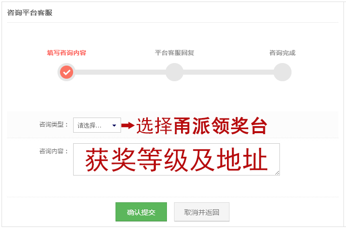C、按規(guī)則選擇甬派領(lǐng)獎臺填寫獲獎等級及收貨地址。