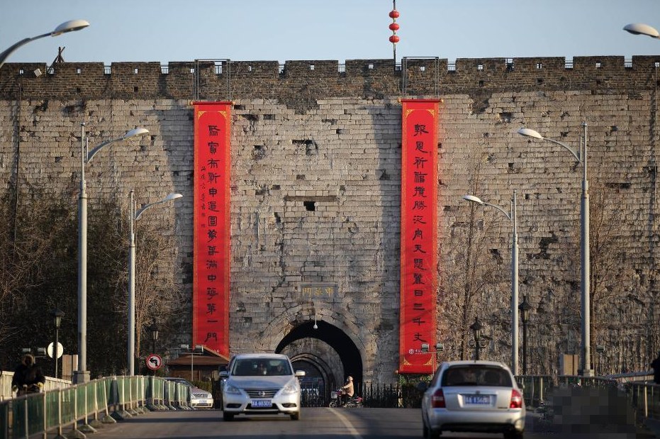 據(jù)悉,這是650歲的南京明城墻首次掛出春聯(lián)。